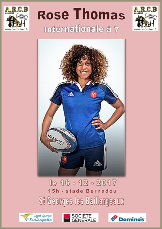 C'est avec une grande fierté que nous vous annonçons la présence de Rose THOMAS à l'ARCB Valvert, le samedi 16 décembre aux horaires de l'entrainement de l'école de rugby (15h-17h30).