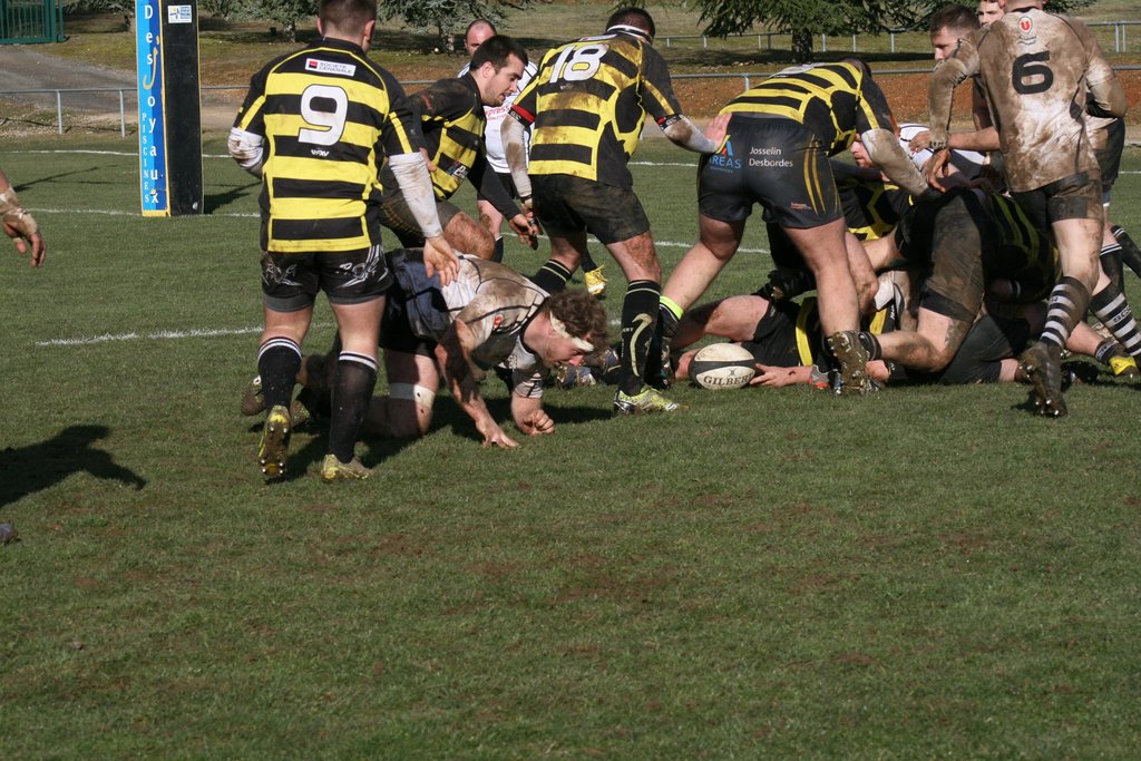 Dès la reprise de la 2ème mi-temps, enfin, nos Gorilles "diesels" ont pris un rythme de croisière non paisible, ont décidé de jouer au rugby, en pratiquant un jeu collectif, de marquer des essais par 3 fois...... Belle partie !!! Mais ......