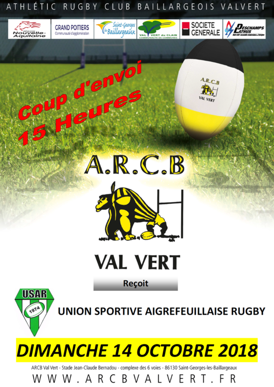 Venez nombreux soutenir les Jaunes et Noirs, dimanche prochain sur le pré du Stade Jean Bernadou face à l’UNION SPORTIVE AIGREFEUILLAISE RUGBY !!